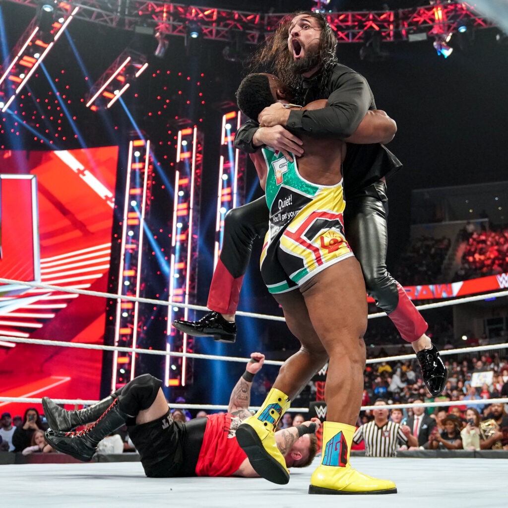 E meus pedidos foram atendidos, pois Big E venceu escapando pela porta da frente! Logo em seguida, Seth Rollins o atacou e depois partiu para Kevin Owens, mas deu tempo de Big E se recuperar e acertar os dois.