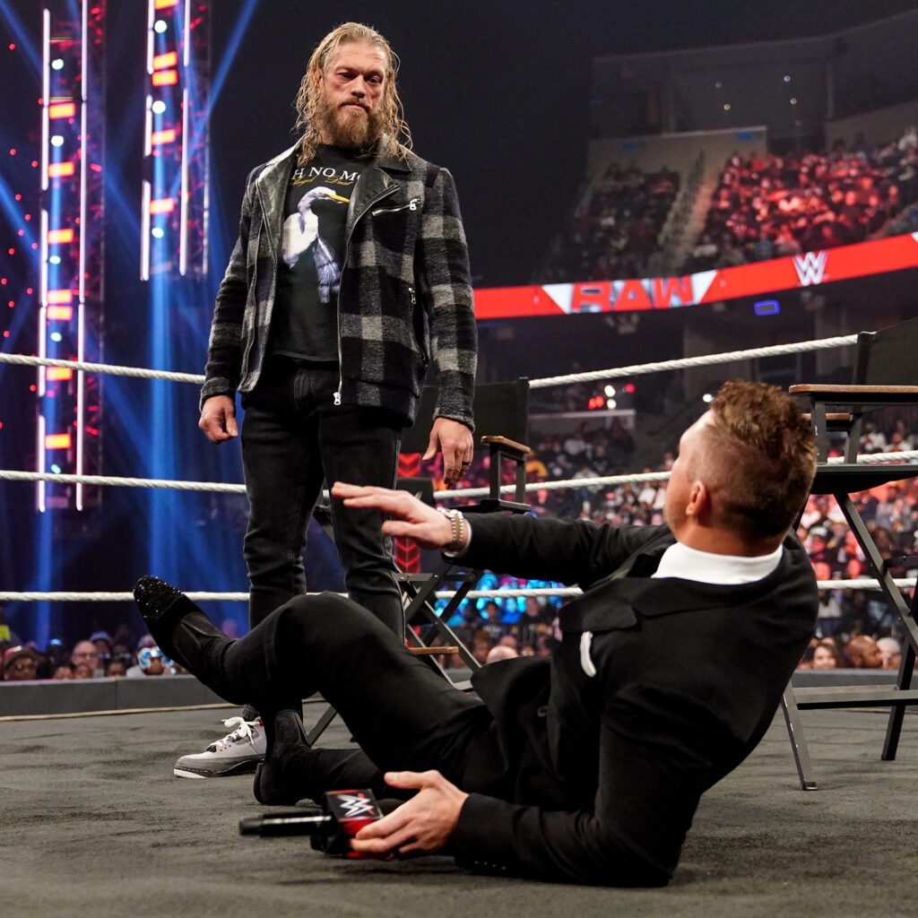 Miz já meteu um trocadilho com Edge, ponto negativo. Miz fala sobre Edge estar mentalmente fraco, Edge zoou os sapatos de Miz. Edge quer entender o que está rolando, mas Miz esquiva.